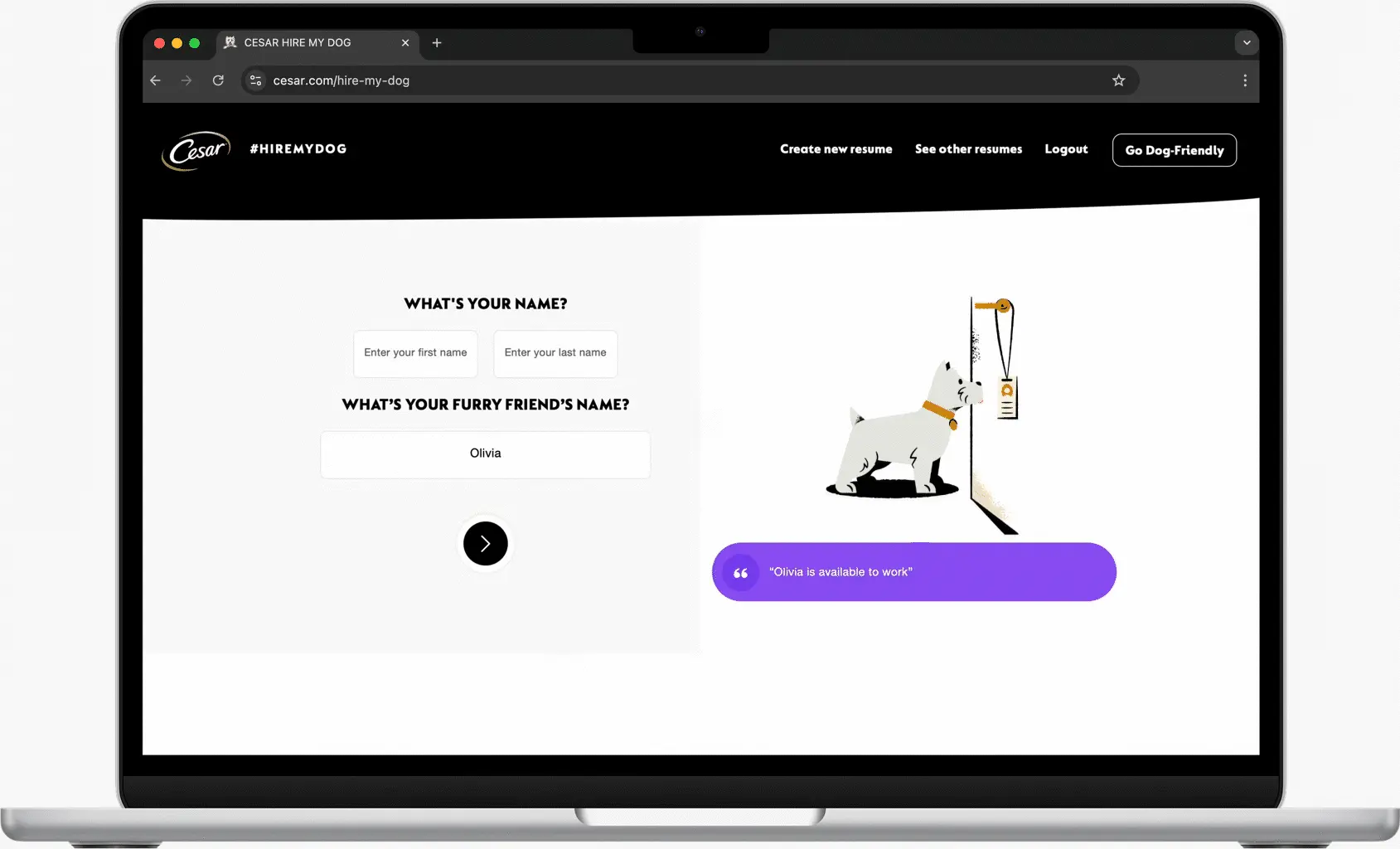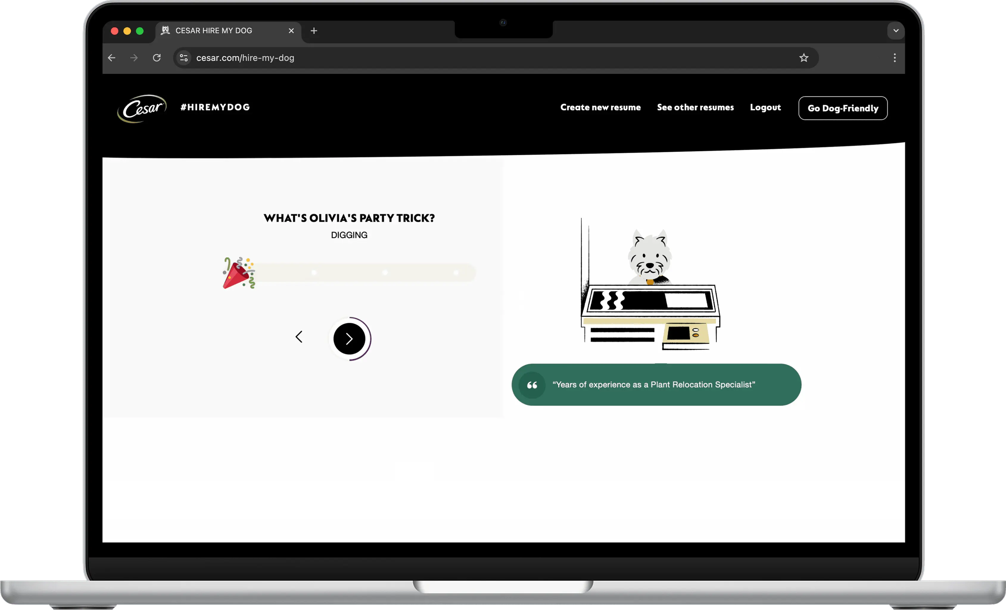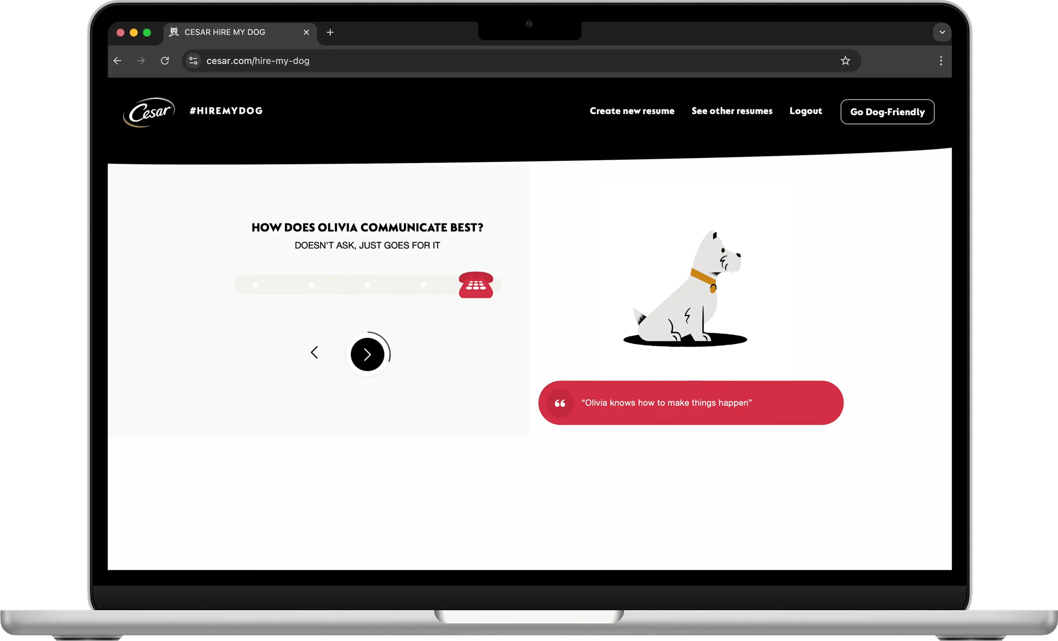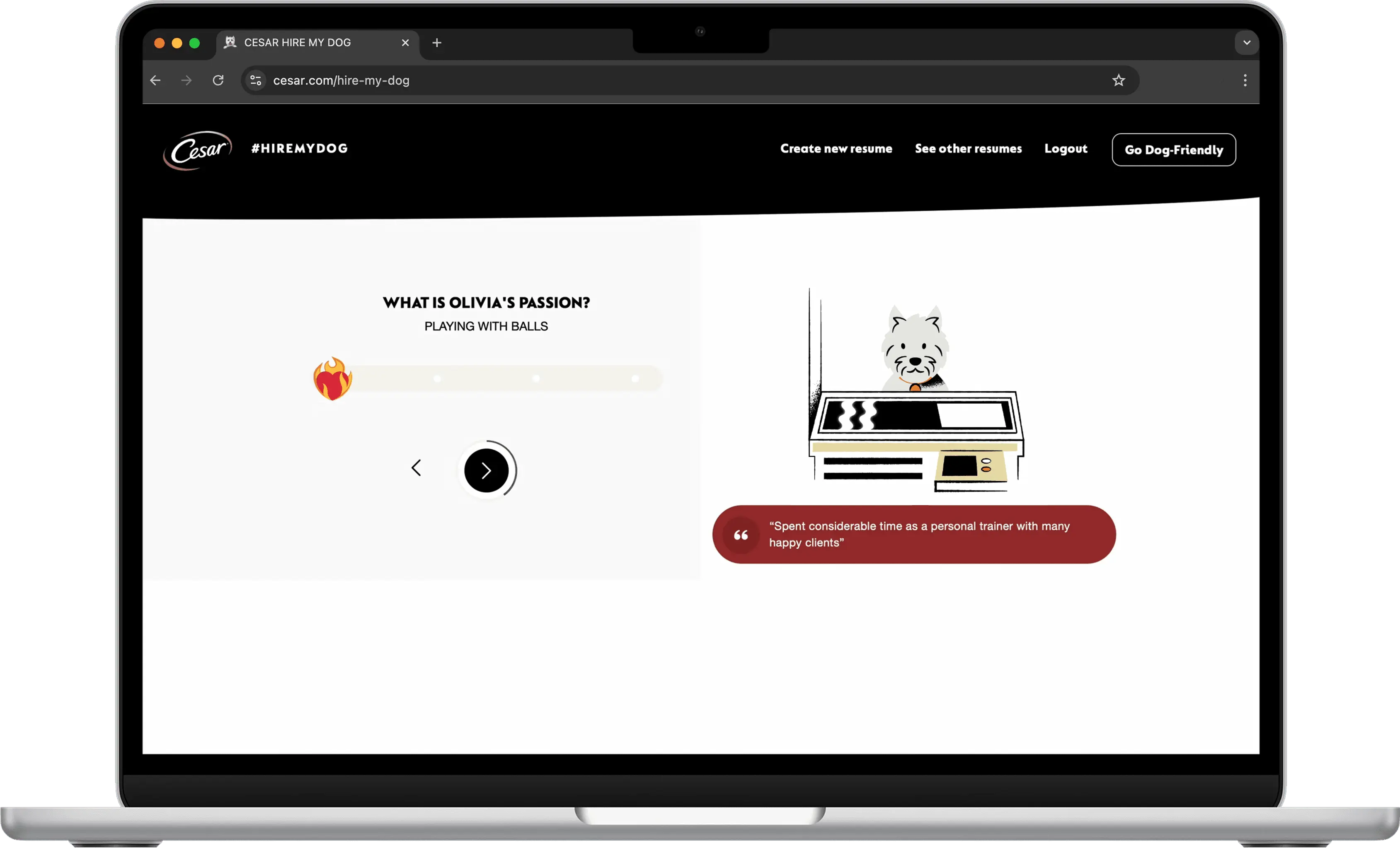 During the 2020 global pandemic, there was a substantial increase in the number of pet adoptions across the United States and the world. As people returned to work in a hybrid format, Cesar (a Mars company) found a great opportunity to help doggies with their resume building, as according to them (and us, of course), dogs make the best co-workers! We worked with Tool of North America to create the animations for the Cesar ‘Hire my Dog’ web experience. This wonderful tool had a big purpose behind it: “make the world a dog-friendly place”. By visiting the ‘Hire my Dog’ site, doggie parents can make their dog’s resume by giving the site information about their pup’s personalities, habits, and more. Give it a try today!