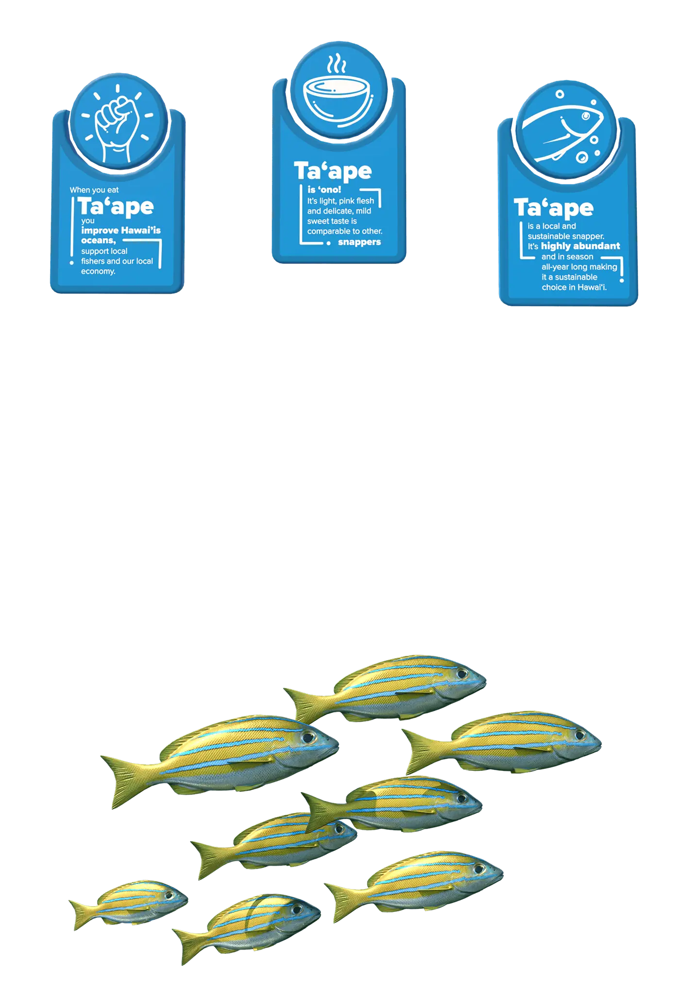 When visiting the Ta‘ape informational website, you will have the ability to see an animated 3D model of the fish, which can be launched in augmented reality by double tapping on the cube icon. In a matter of seconds, the fish comes to life right in your environment, and you have the ability to see it from every angle and read important notes about it.