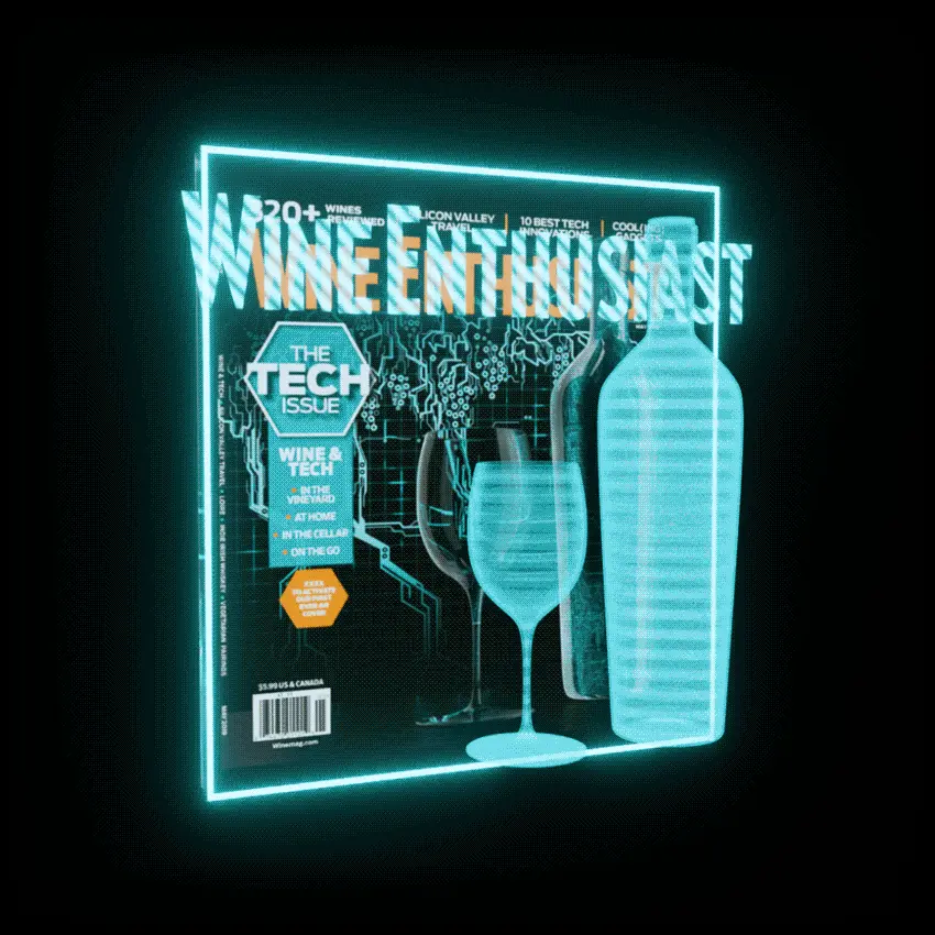 Wine Enthusiast Magazine asked us to build their first-ever Augmented Reality magazine cover. The task was to create an application that would launch a digital experience when the magazine cover was detected. In collaboration with the magazine and award-winning digital artist Pete Bollinger, we elected to choose a sci-fi interface that brought Peter’s video to life by creating a 3D version of it that is displayed in different layers as if they were coming right out of the magazine. The experience ends with a very futuristic hologram of the actual cover. Check out the full Wine Enthusiast article here.