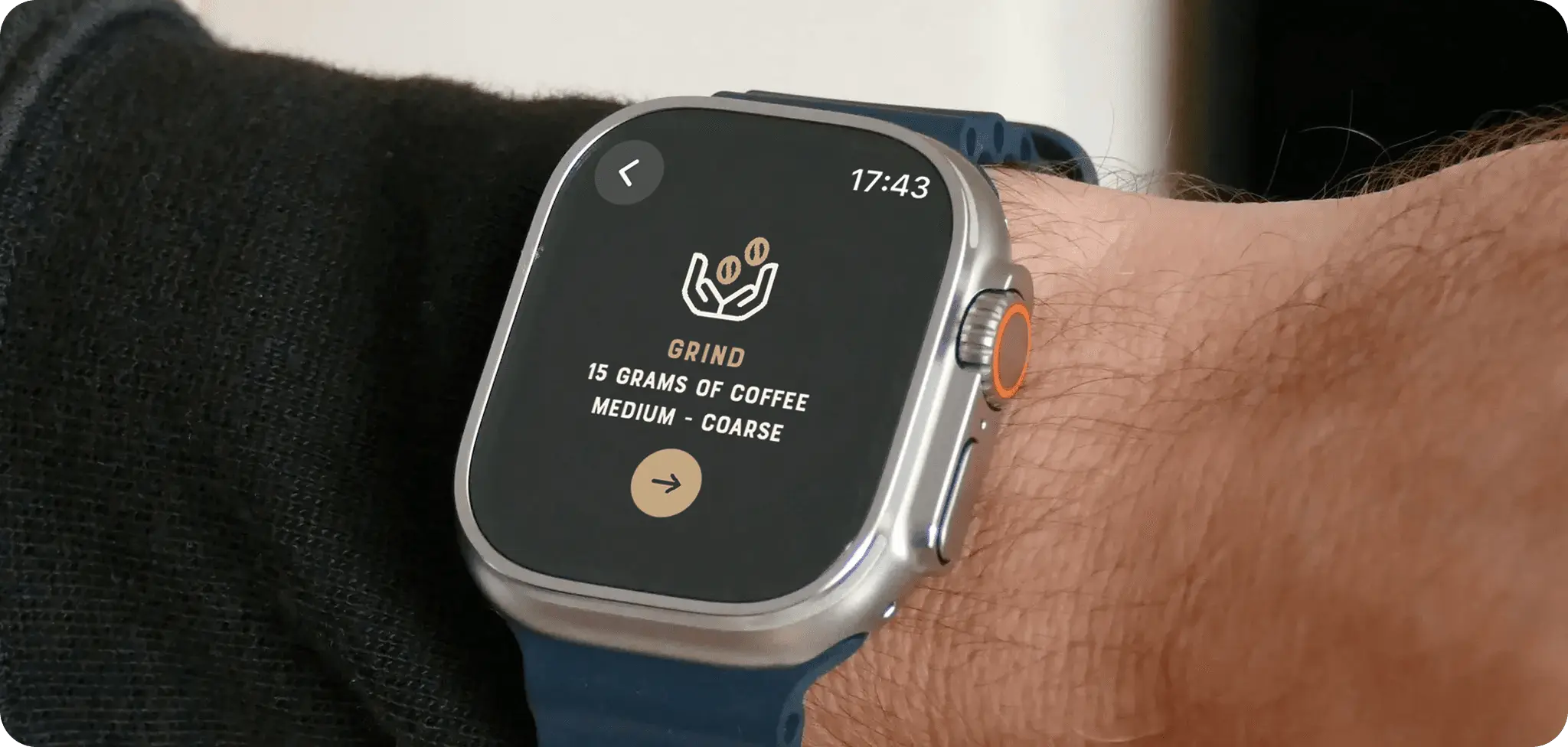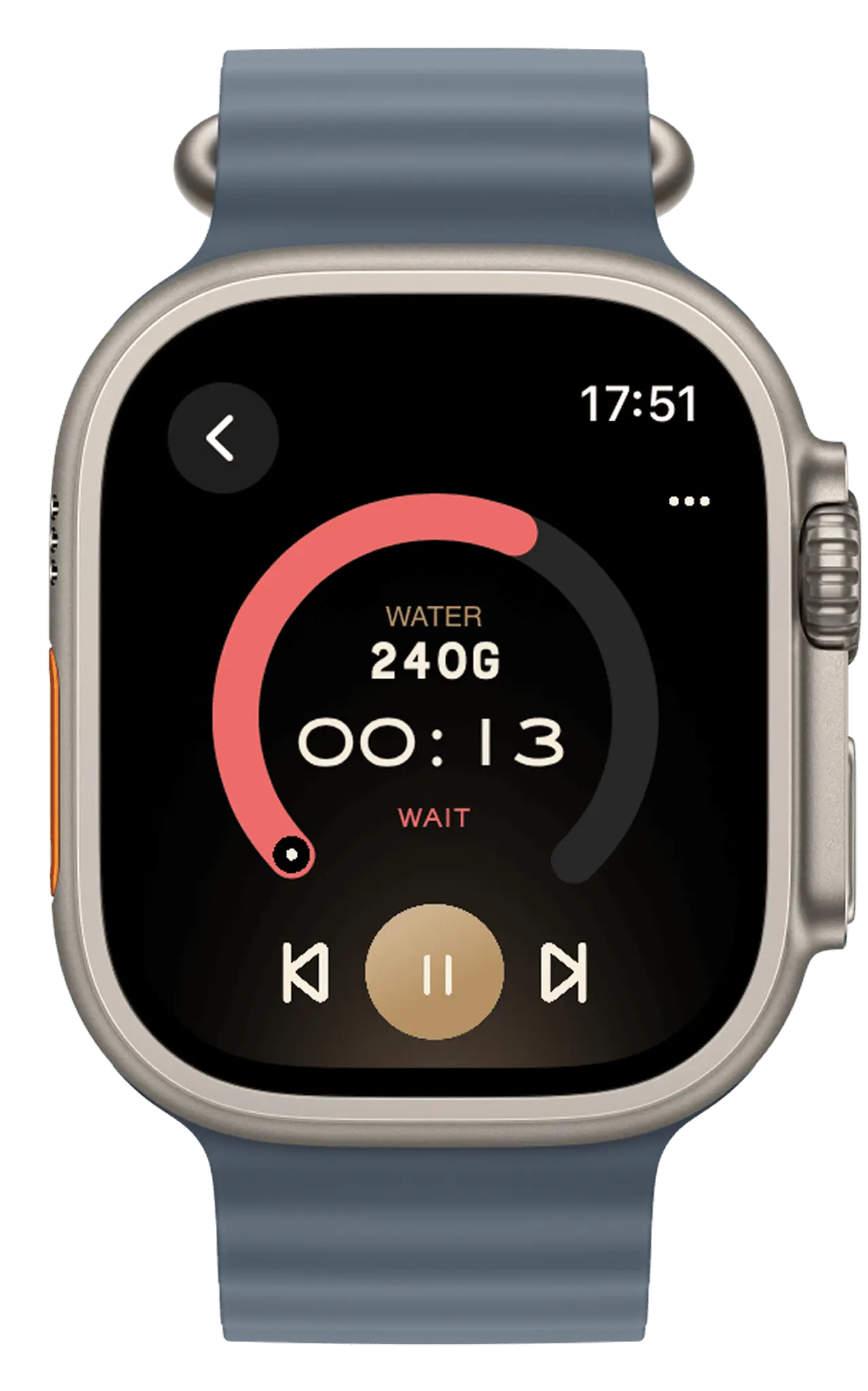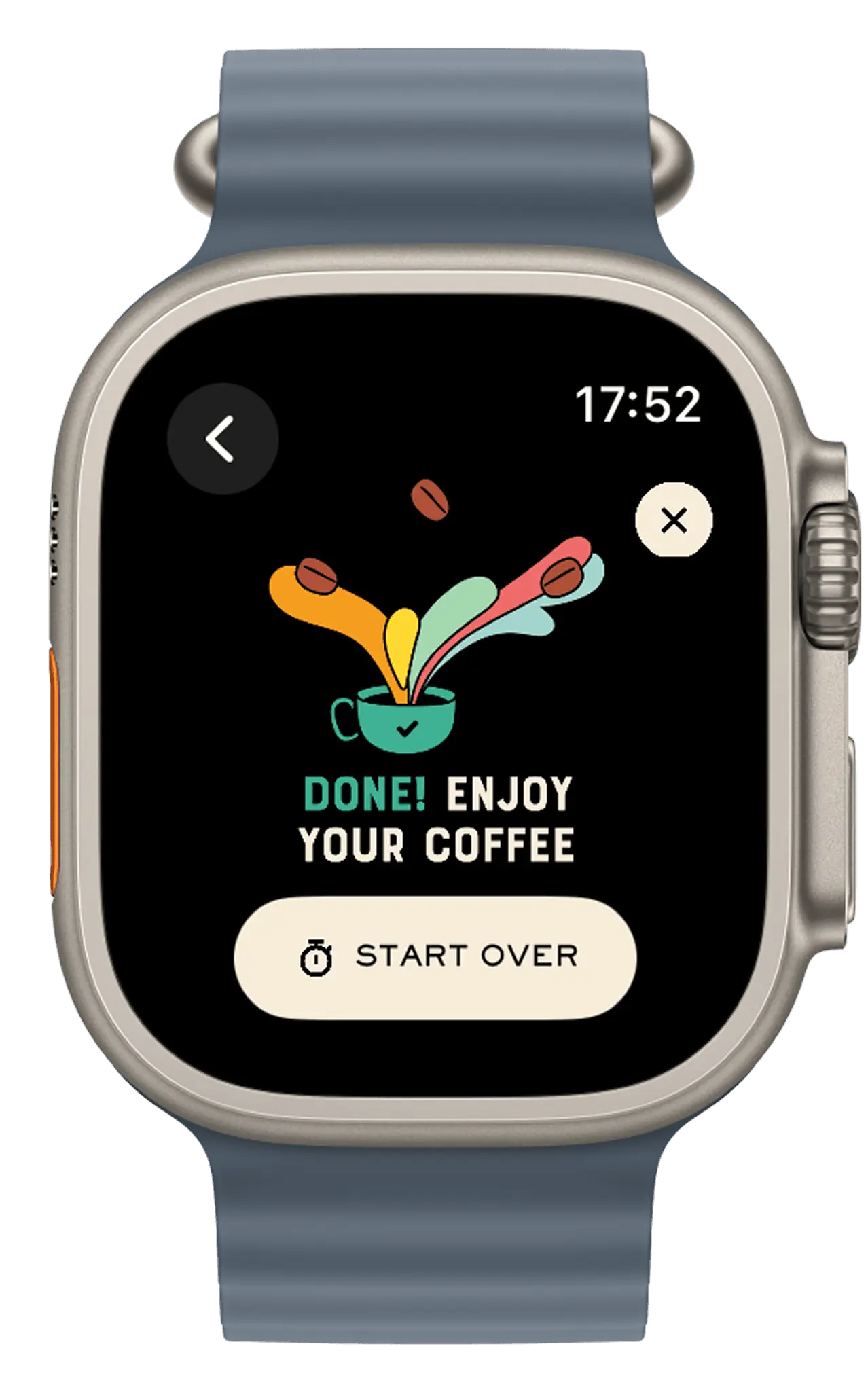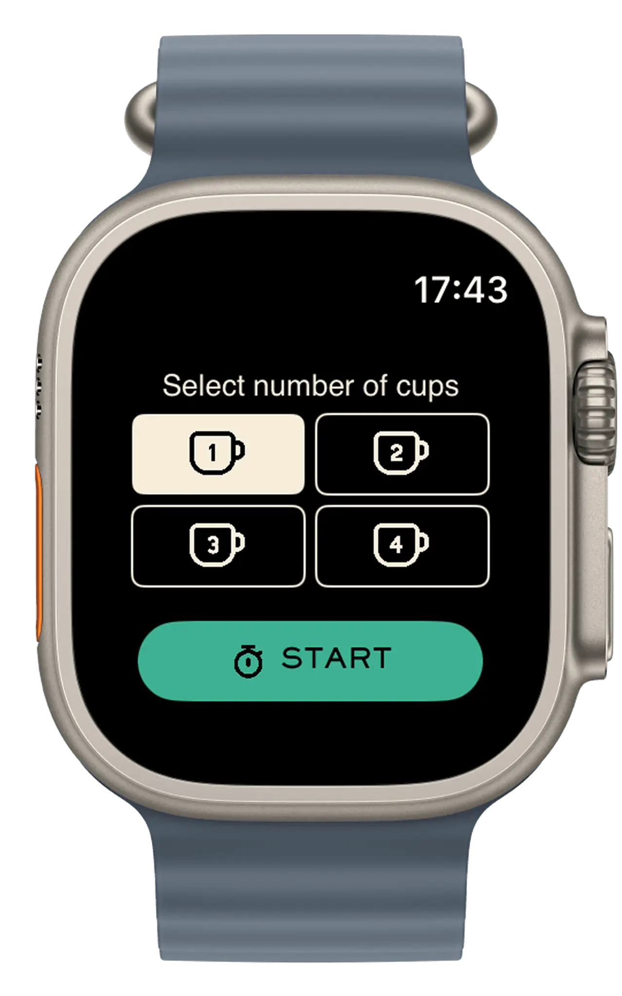 Choose cup count, and tap START—the Love Preferred Apple Watch tool walks you through every bloom and pour with haptic cues and on‑screen weight‑to‑water prompts. No phones, no guesswork, just café‑grade timing synced to your pulse so every pour‑over tastes exactly as the farmer intended.