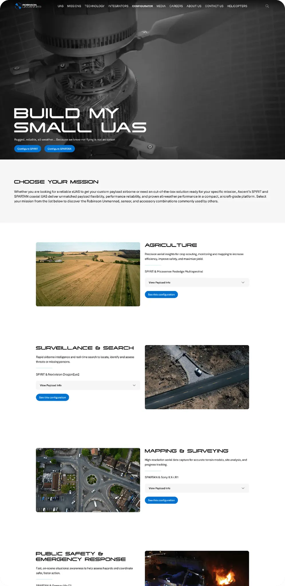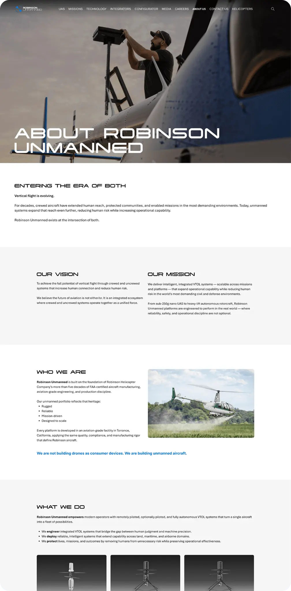By maintaining a consistent visual language across these three distinct pillars, we help bring the entire Robinson ecosystem to life, offering customers an engaging and immersive way to explore the future of vertical flight and autonomous technology before acquisition.