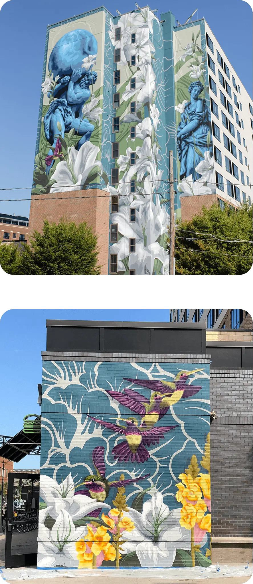 The Short North Arts District in Columbus, Ohio hired us to augment what was to become the largest augmented reality mural in the world; three walls with a total of 11,000 ft2. Beautifully painted by artists Eric Skotnes and Ryan Safarti, “The Journey” has been one of our most memorable projects yet. Working with such talented muralists and with such a massive surface was thrilling! If you feel like trying The Journey’s augmented reality on your computer screen, please download the app here for iOS and here for Android. Then launch and point your camera at the photos below to launch the experience (note: different computer screens and lighting can affect the performance of the augmented reality).